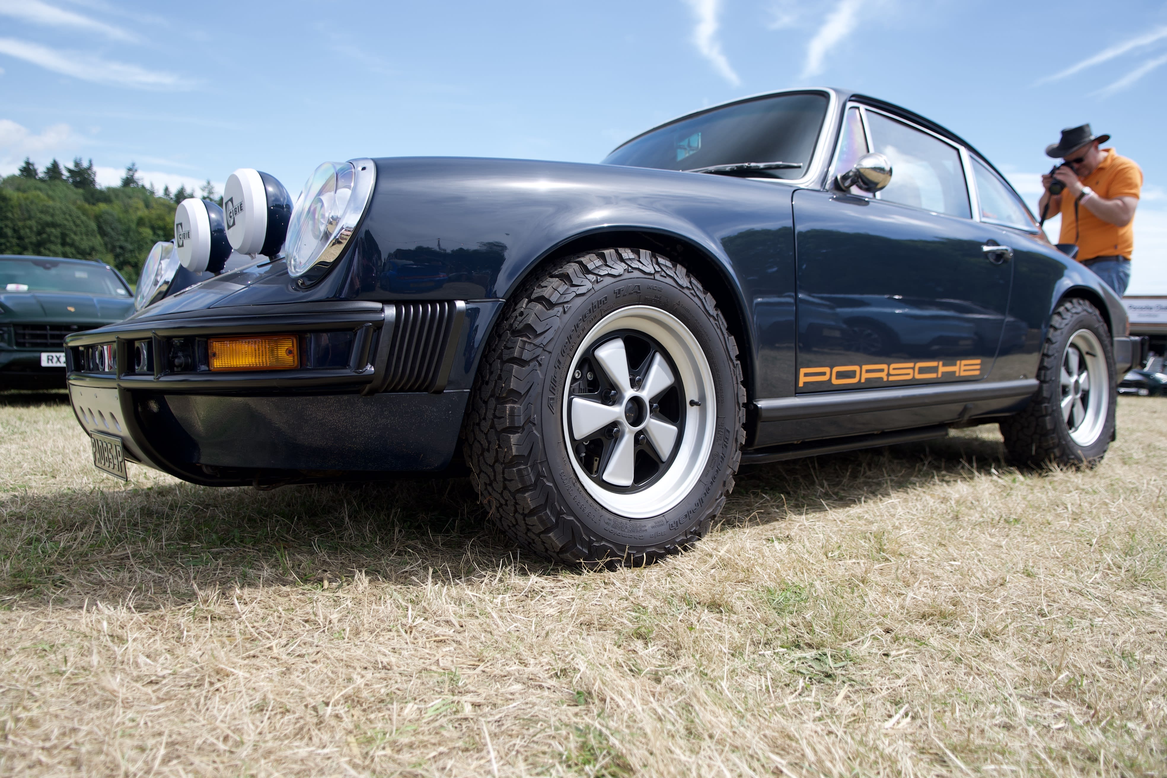 Sitting on a haybale among the electric car appliances of other marques, I wondered if the Porsche poster child of the 80’s had intentionally been sidelined in favour of the GT cars, leaving it to become a luxury barge to replace the 928. Most certainly sticking your head into a 930 of the late 70’s and 80’s the lack of luxury evident runs a parallel of a cold winter breakfast of a Spartan army marching across a peat bog. With the current Turbo dripping with every conceivable addon while weighing in well over a ton and a half, the GT cars have become the hero spec with lightly foamed carbon planks for seats and styling flamboyant and wings so vast and high you could rest your nose on rather than a cup of coffee.
